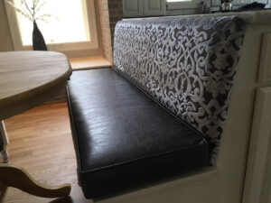 Custom fabric and leather bench booth