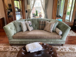 Fabric love seat curtains pillows