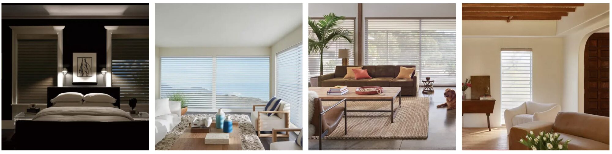 Hunter Douglas room darkening blinds and shades.